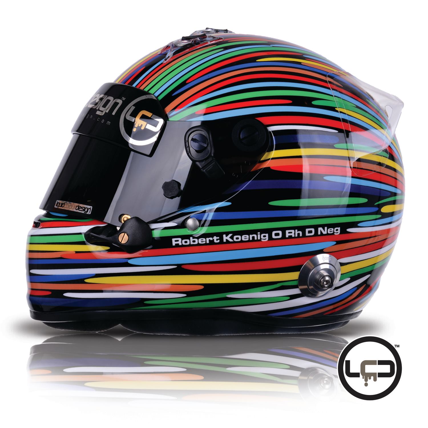 This is a real stuuner of a helmet and very bright helmet design created for repeat client Amna who is racing in UAE F4.